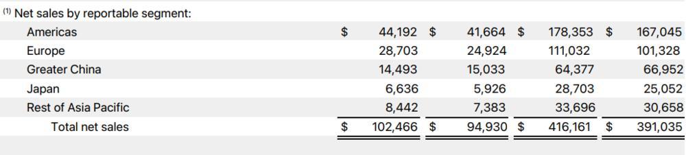 财报背后还藏着两个关键故事:一边是服务业务以28%的营收贡献了45%的毛利润,成为最强增长引擎;另一边是苹果在中华区受阻,中国市场成为苹果全球唯一出现负增长的市场。