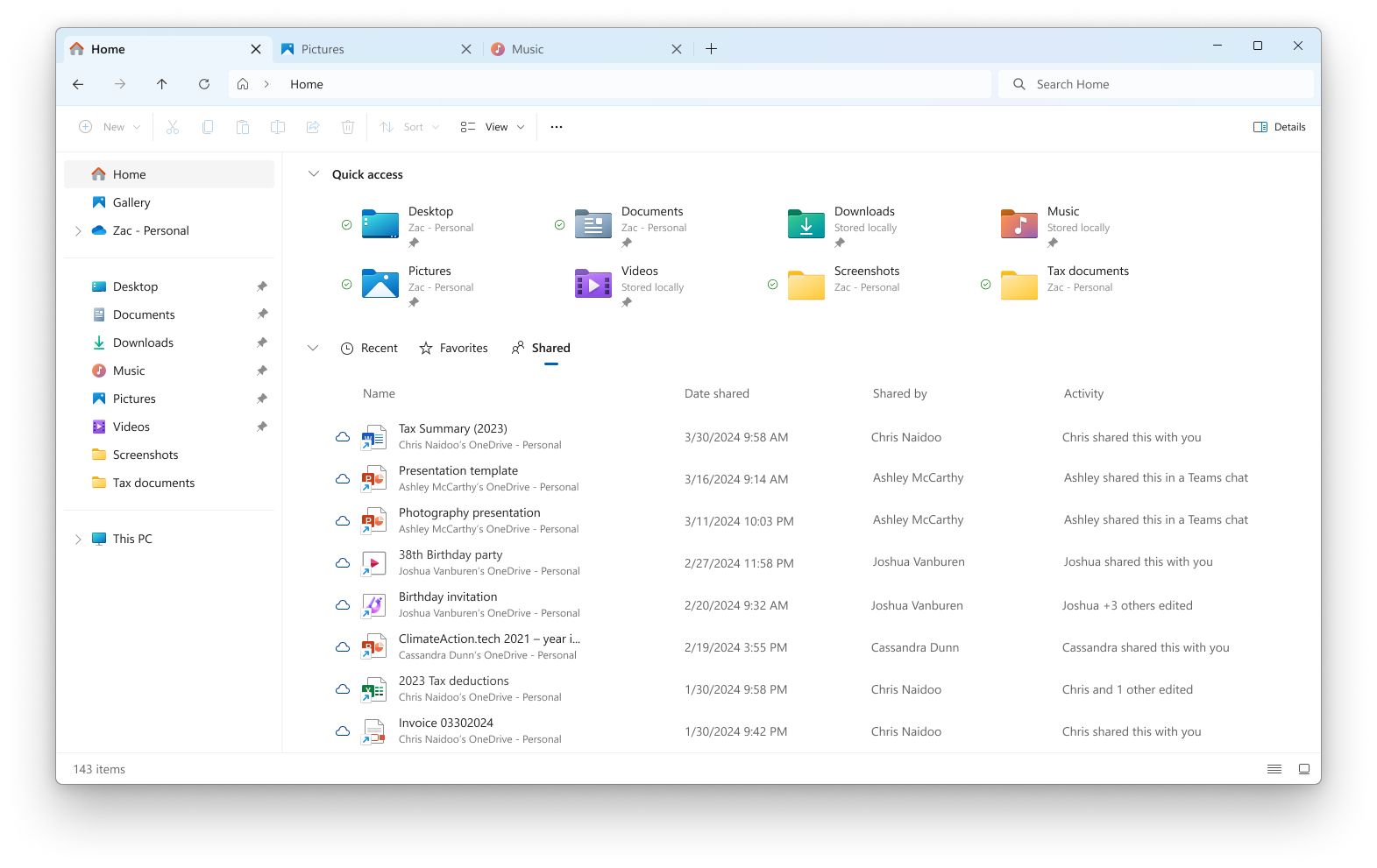 用户如果在 Windows 系统中登录 Microsoft Entra ID 账号,还可以查看他人共享的文件。