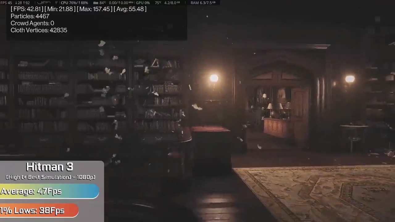 更令人惊喜的是,即使是《赛博朋克 2077》和《杀手 3》这类硬件要求较高的游戏,在 1080p 高画质下也分别取得了 42 帧和 47 帧的平均帧数。