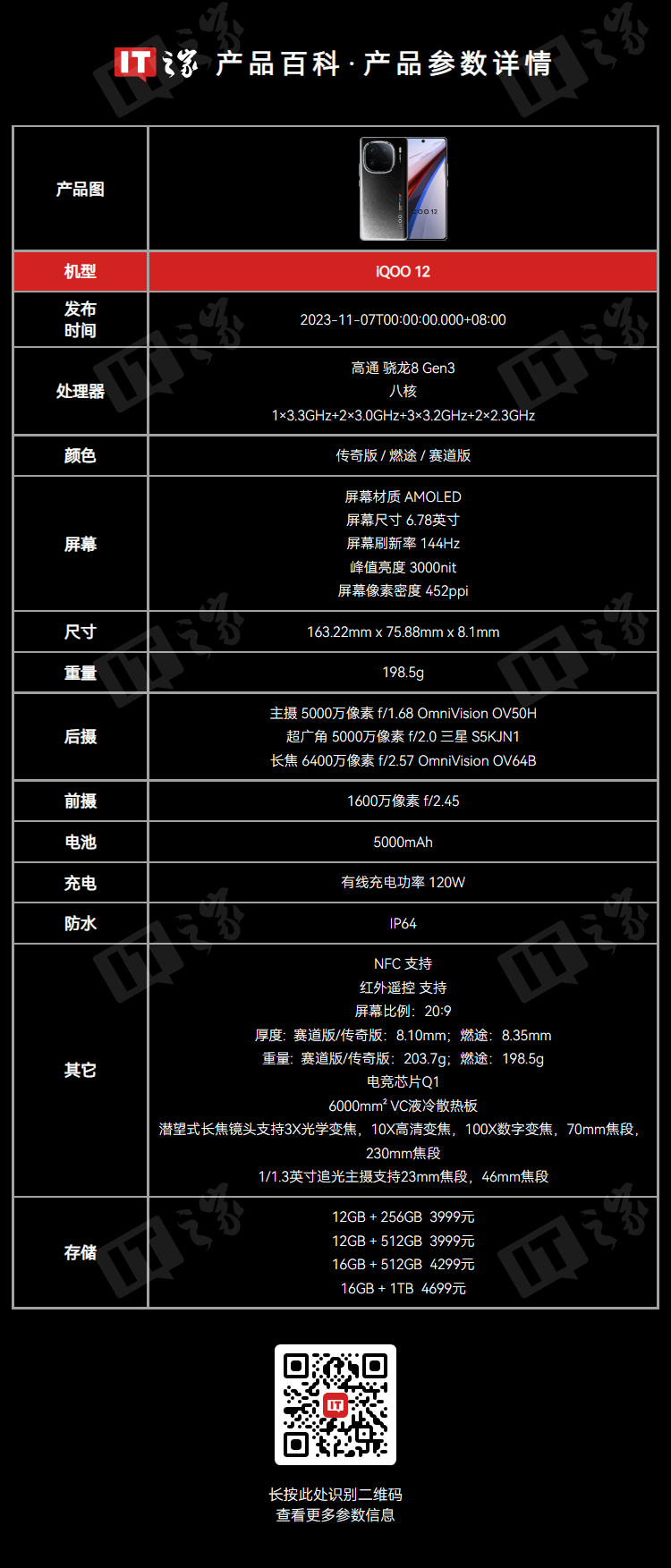 IT之家附 iQOO 12 对比参数如下: