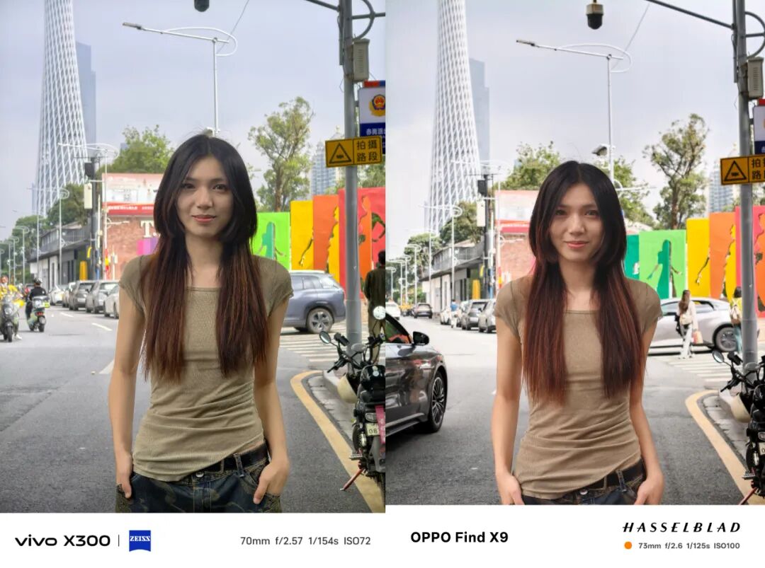 而面对阴天灰蒙蒙的人像场景,OPPO Find X9 的色彩表现要相对更舒服,并且虚化也很到位,相比较下 vivo X300 以自然光感为主。