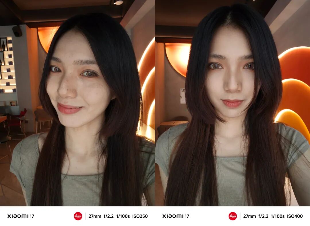 小米 17 虽然没有主打真实感的美颜效果,但它的默认智能美颜方案也会注意保留肌肤纹理,并且小米 17 的影调和色彩也是最具有质感的。