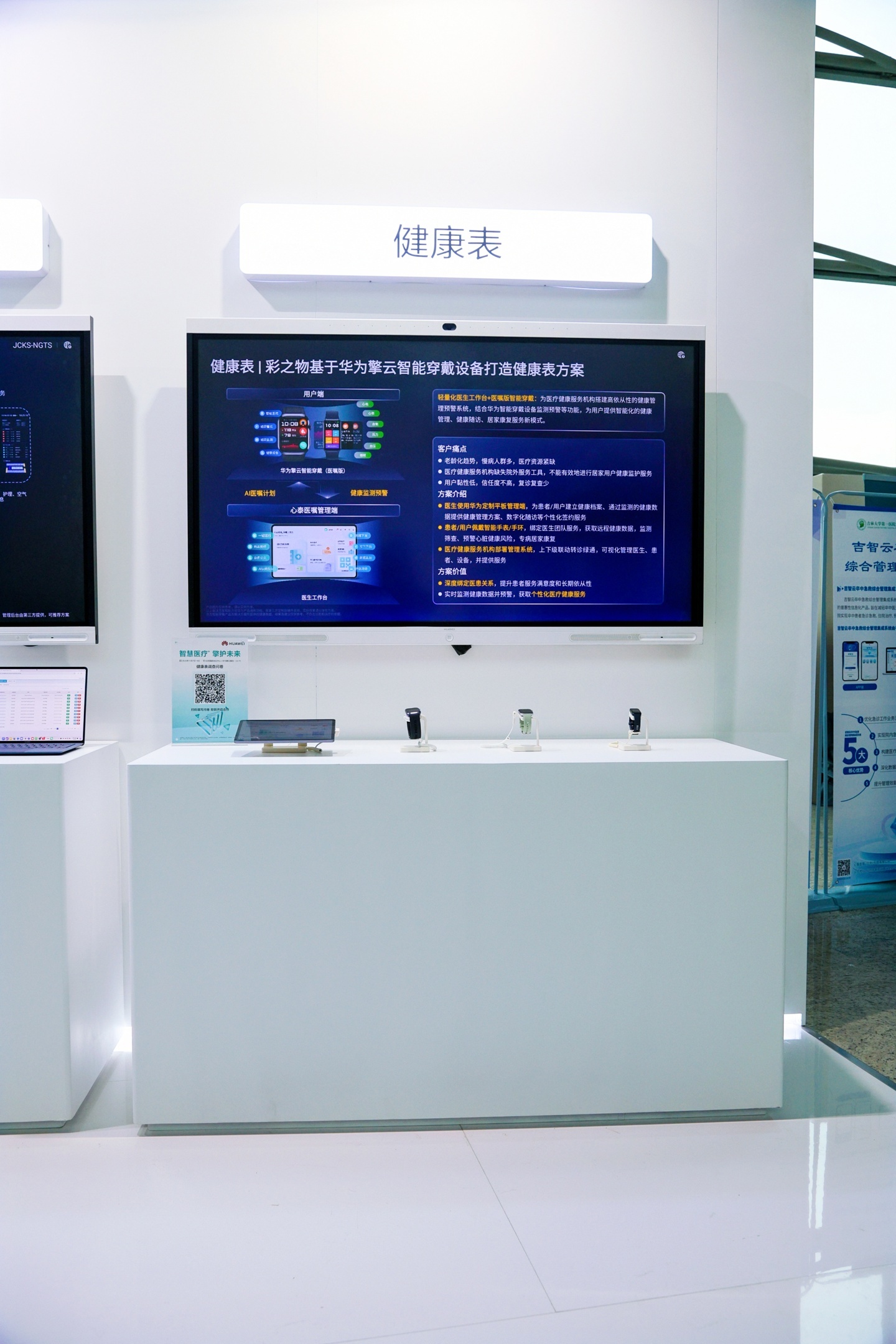 展会期间,大会主办方相关领导专家带队,至华为擎云展台参观体验,全方面了解擎云智慧医疗解决方案,并对健康表、卒中风险监测预警等方案进行深度交流。