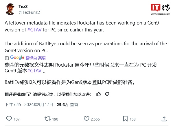 IT之家 9 月 21 日消息,科技媒体 Videocardz 于 9 月 18 日发布博文,报道称基于 Rockstar Launcher 中的相关文件,表明 Rockstar Games 正在开发 PC 版《GTA 6》、《荒野大镖客:救赎》以及《GTA 5 Gen 9》游戏。