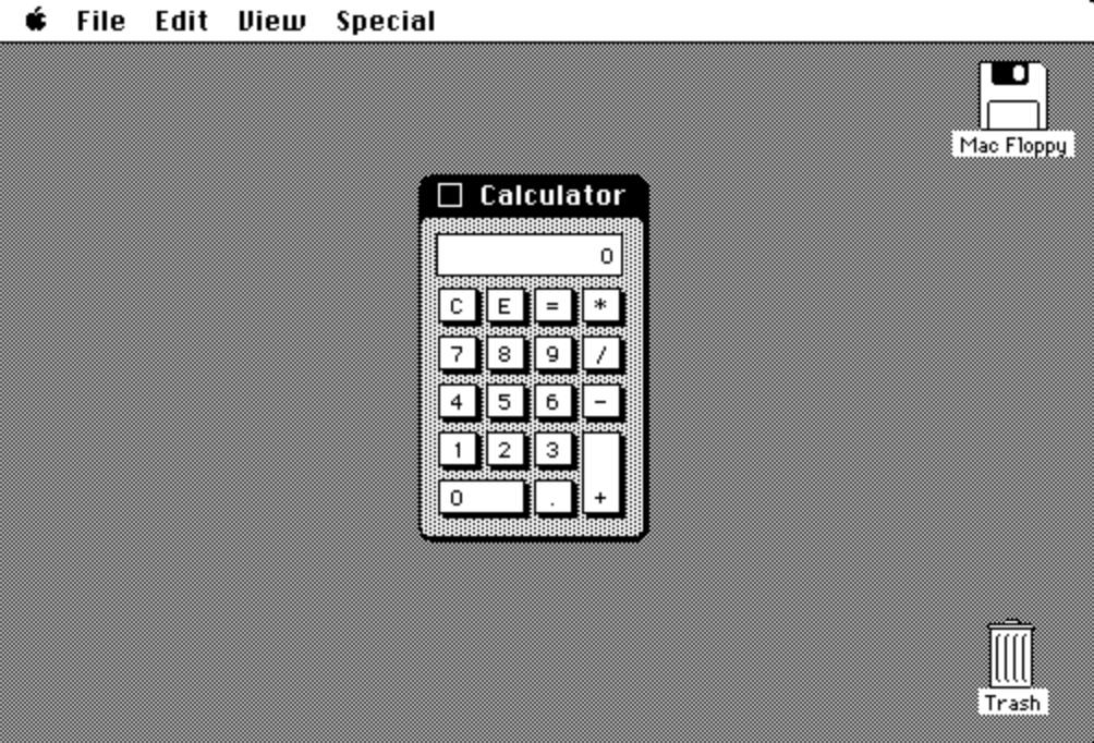 就这样,Macintosh 自带的计算器诞生了——它在 1984 年随首款 Mac 一起发布,此后在 Mac OS 系统里一用就是 17 年(从 Mac OS 1 一直到 OS 9),直到 2001 年苹果推出 Mac OS X 才被新的设计取代。
