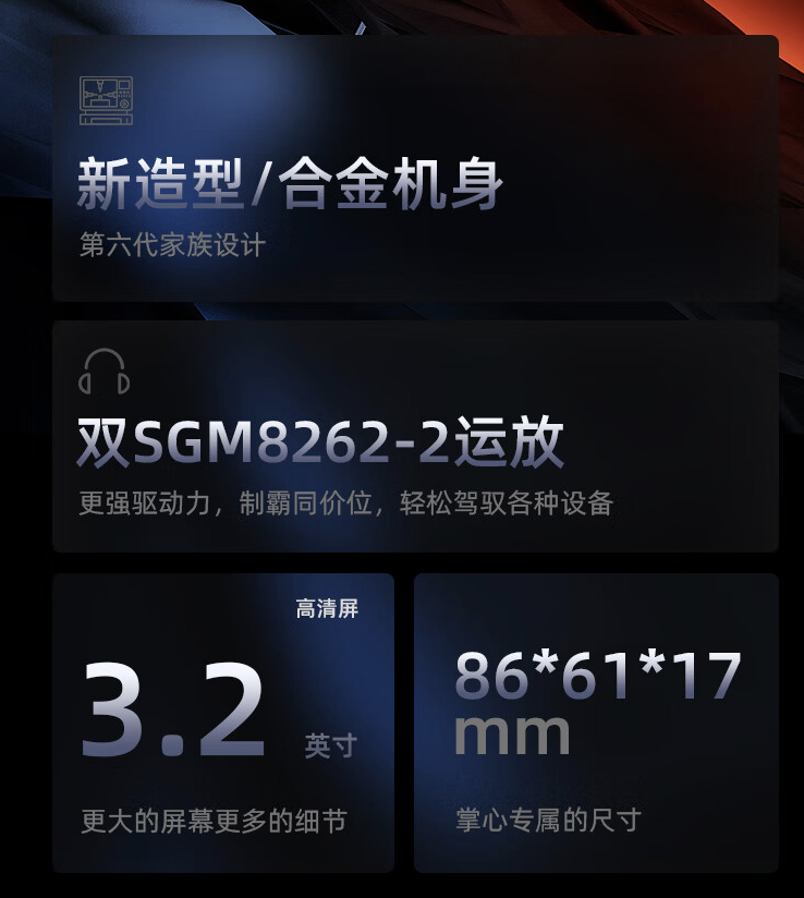 据介绍,这款播放器造型小巧,外观采用红黑限定配色,其配备 3.2 英寸 320x480 分辨率触摸屏,内置 MTouch 2.0 交互界面,右侧配有旋钮,旋钮处同时配有氛围灯。