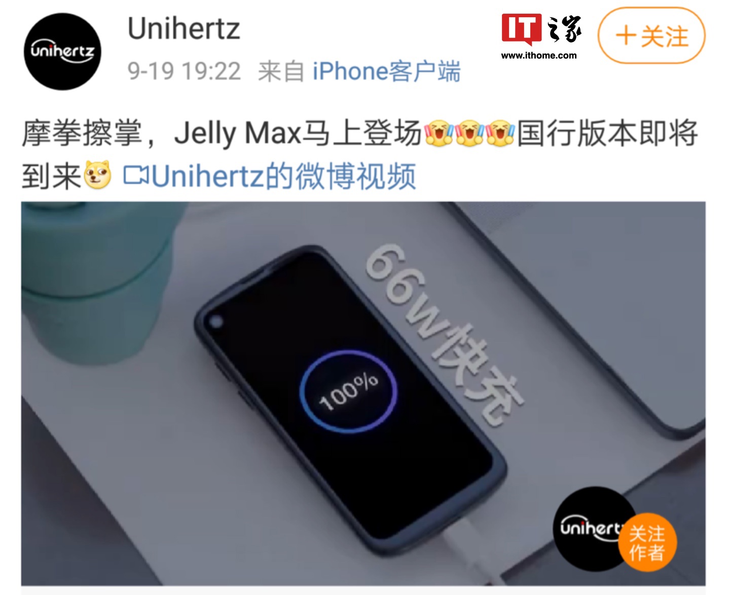 IT之家 9 月 23 日消息,Unihertz Jelly Max 小屏手机国行版现已在微博开启预热,该机目前已入网工信部,海外版本于今年 7 月在海外平台 Kickstarter 开启众筹,早鸟价 199 美元(IT之家备注:当前约 1449 元人民币)起,预计国行价格与之接近。