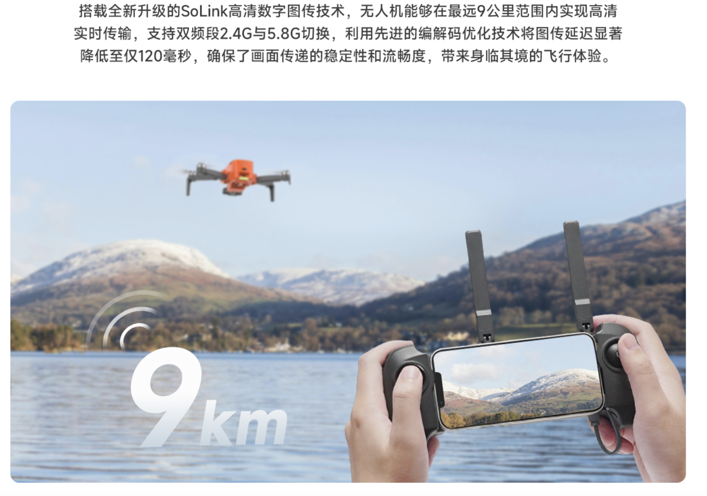 此外,这款无人机支持北斗定位,图传距离 9 公里,起飞高度 4000 米,重量 245 克,配备 2200 毫安时电池,电池拥有 USB-C 充电接口(支持 27W 充电)。