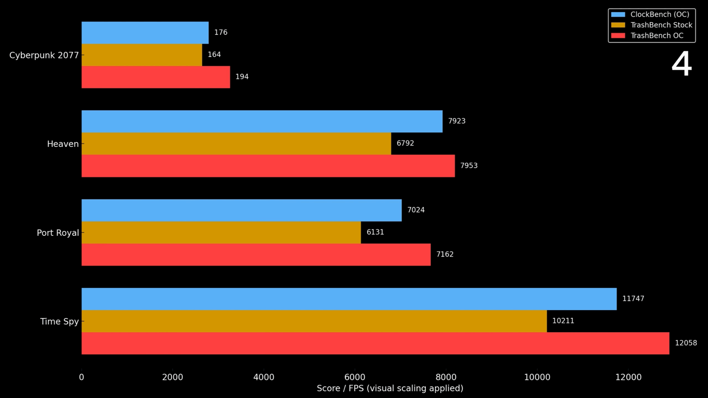 该媒体指出,23% 的频率提升在当下尤为难得。随着现代 GPU 制造工艺的进步,其出厂频率已非常接近性能极限,多数产品即便经过硬改,超频幅度也难以突破 10%。