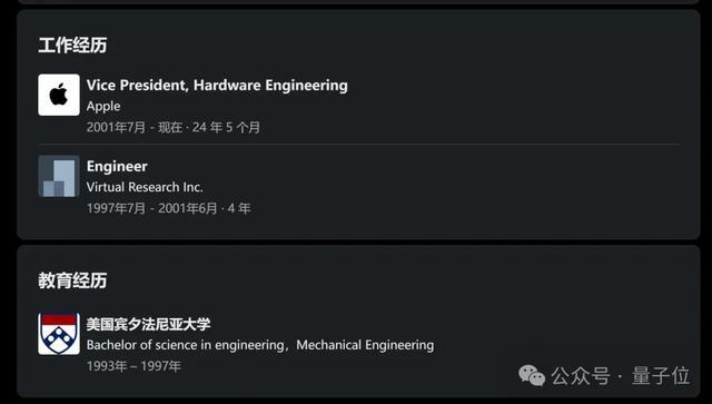 毕业后在一家早期开发VR眼镜(消费级头戴式显示器)的公司担任工程师,4年后离职加入苹果。