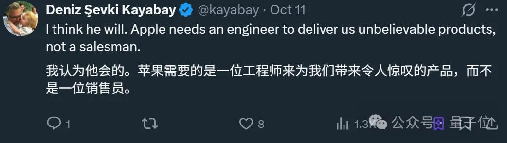 在此背景下,外界普遍认为苹果当前急需一位真正懂技术、懂产品的CEO。
