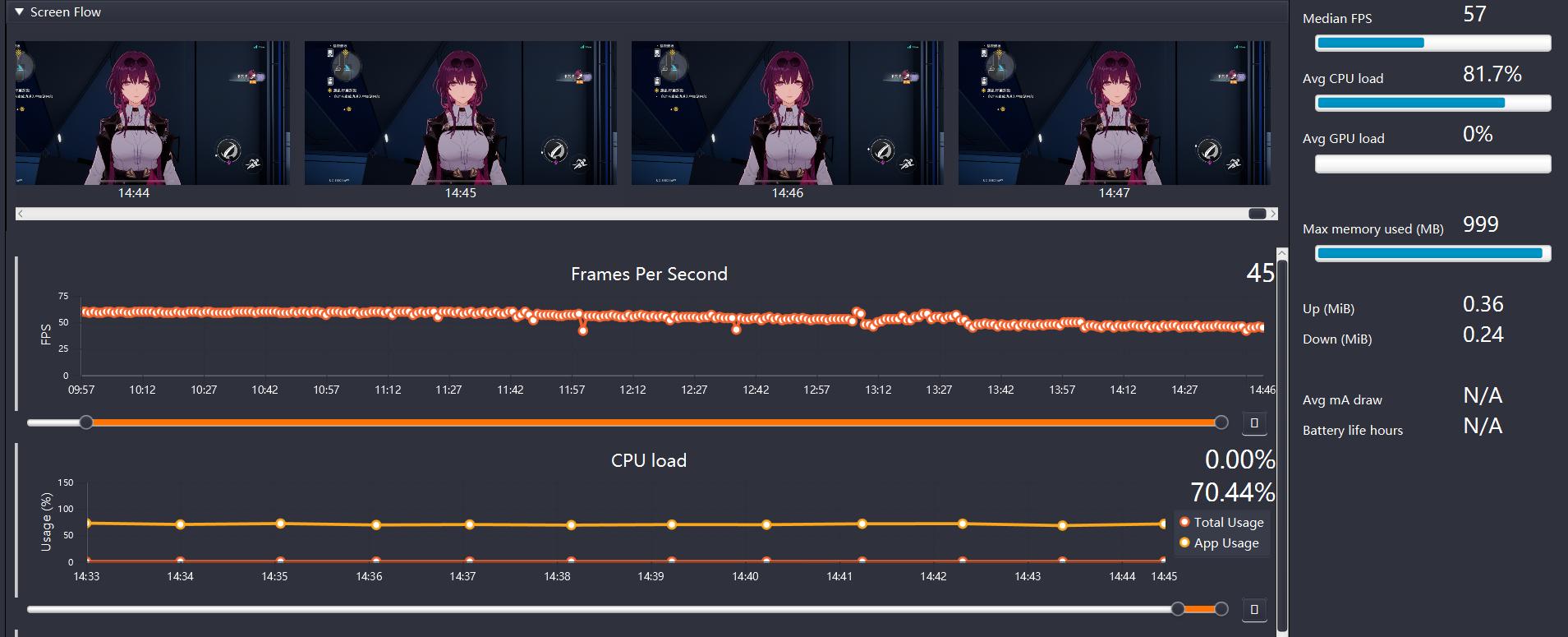 但是,在4K录像上以微弱优势胜出的iPhone 16,依然无法解释为啥打游戏时的温度会比小米14高这么多。虽然从iPhone 16的帧率来看,几乎没有波动的帧率曲线和接近60帧的平均帧数确实让人忍不住点个赞,但是43.2度也确实是高了一些。