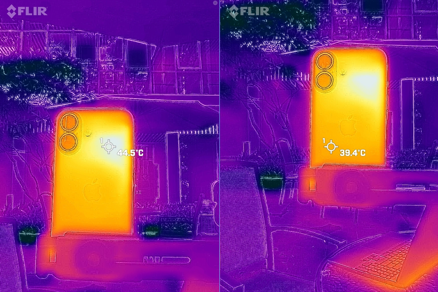因为iPhone 16的A18芯片性能与iPhone 15 Pro的A17 Pro几乎没有区别,而iPhone 15 Pro的「火龙果」称号估计大家也还没忘记。此前测试时后盖的最高温度直接突破50度(26度室温状态下),而iPhone 16在相同的性能表现下,即使是30度室外环境的最高温度也只有45度左右。