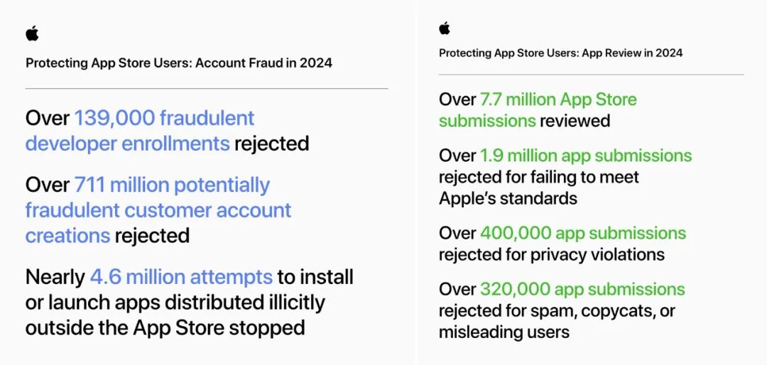 截至今年 5 月,App Store 已经在过去 5 年时间里累计阻止了超过 90 亿美元欺诈交易,仅 2024 年阻止的金额就超过了 20 亿美元。能在 App Store 应用生态持续快速增长的情况下,为用户提供不断更甚以往的安全交易体验,正是 Apple 越来越多、更加周全的技术体系下的成果。有了 Mini Apps Partner Program 的加入,不仅通过 App Store 分发和下载 app 的安全举措又更进了一步,也让开发者和用户能够更好地从前沿技术中受益。
