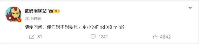 毕竟这几个月各家小屏旗舰的预热就基本没停,比如这个 OPPO Find X8 mini,看名字就是 OPPO 旗舰系列的小屏款。