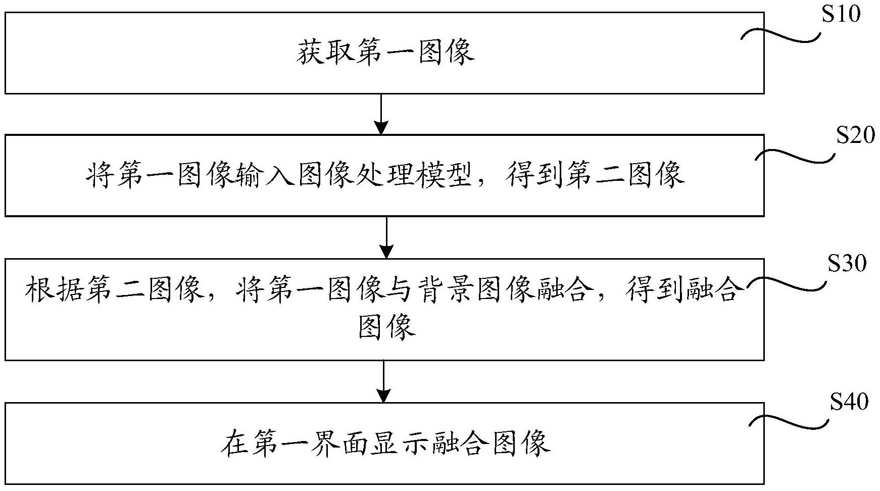 一种图像处理方法。所述图像处理方法包括:获取包含目标对象的第一图像;将所述第一图像输入图像处理模型,得到第二图像,所述第二图像为所述第一图像中的目标对象的掩码图像,所述第二图像的每个像素的取值范围为[0,1];根据所述第二图像,将所述第一图像与背景图像融合,得到融合图像;提供第一界面,在所述第一界面显示所述融合图像。