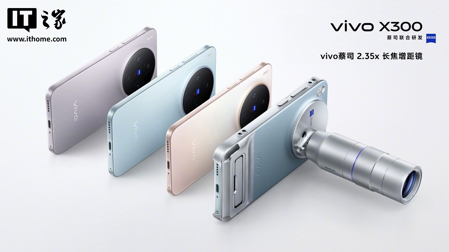 作为参考,vivo X300 / Pro 手机于今年 10 月发布,全系支持 X200 Ultra 同款蔡司 2.35x 长焦增距镜,标准版和 Pro 全都有。此次还新推出全新银色配色增距镜,同时全面适配多种拍摄模式,涵盖风光、抓拍、人像、专业、人文等场景,在影像方面继续提高,未来的 Ultra 版有望在影像配置上更进一步。