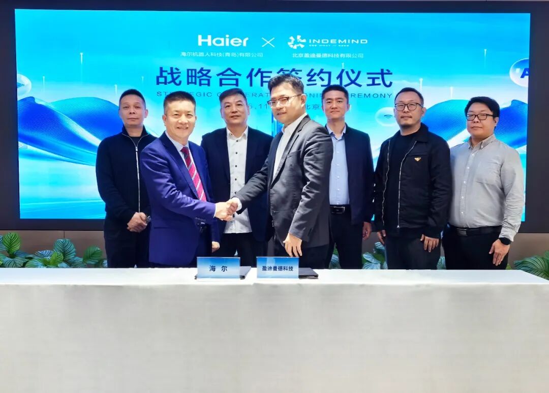 2025年11月19日,海尔机器人与北京盈迪曼德科技有限公司(以下简称INDEMIND)在北京正式签署战略合作协议,共同推动具身机器人在家庭场景的落地与应用。海尔智家机器人产业总经理丁来国、INDEMIND创始人于飞及双方核心成员共同出席了签约仪式。