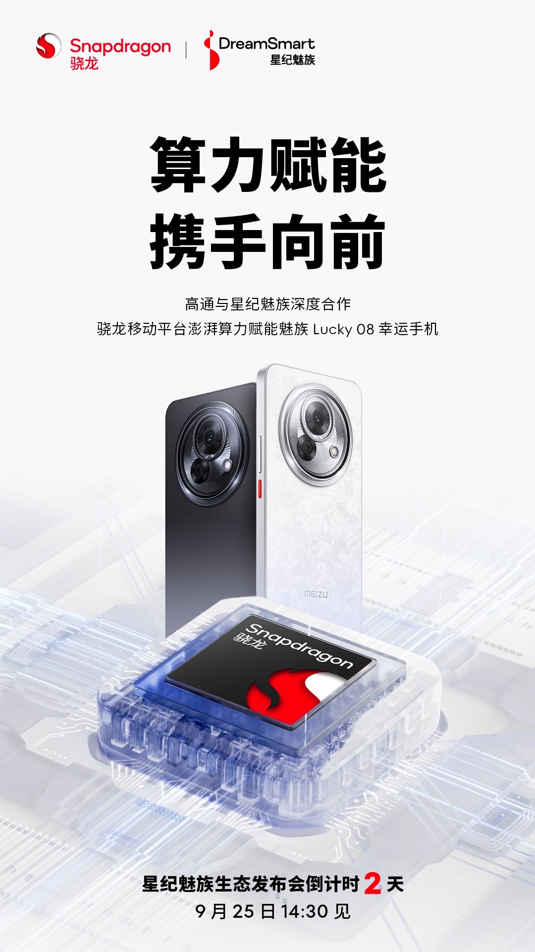 IT之家 9 月 23 日消息,魅族 Lucky 08 手机已定档今年 9 月 25 日发布,该手机将配备 1.5K 8T LTPO 直屏,后置一亿像素超清大底主摄。