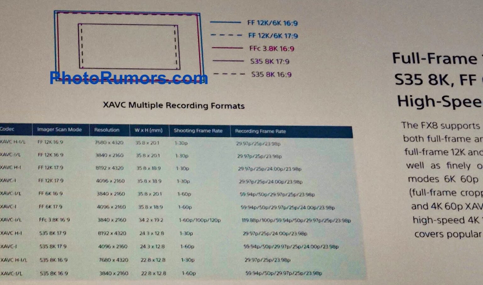 IT之家 11 月 24 日消息,消息源 Photo Rumors 上周(11 月 21 日)发布博文,曝光索尼 FX8 电影机的详细参数,显示这款相机将搭载 12K CMOS 传感器,有望支持全画幅 8K 30P 视频录制。