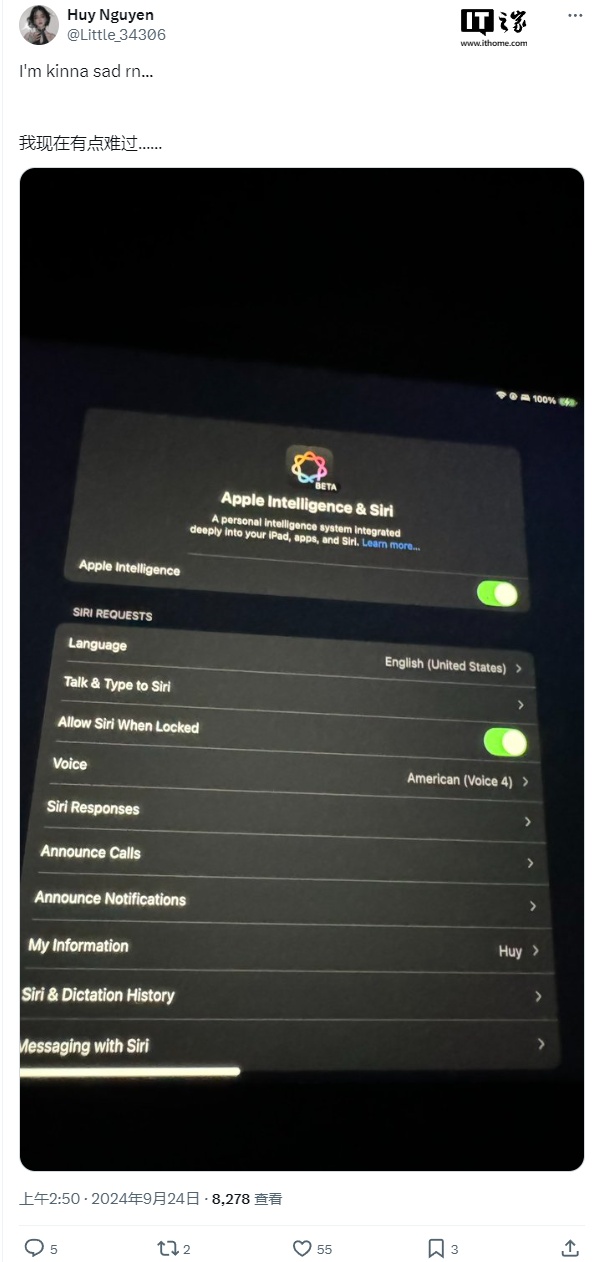 MisakaX 联合开发者 Huy Nguyen 发现,苹果已经封堵了 Apple Intelligence 的破解漏洞。当用户升级到 iOS 18.1 Beta 5 之后,此前所有通过 MisakaX 这类方式开启 Apple Intelligence 的用户都将一切恢复原样。