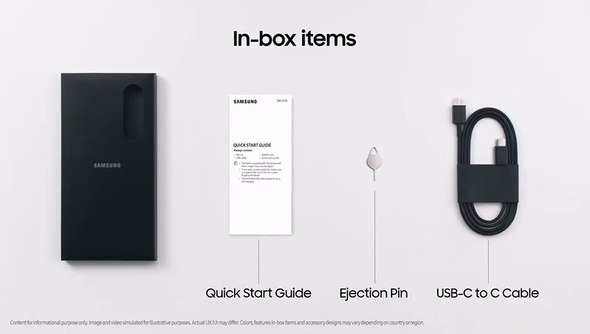 除了手机之外,里面还包括快速启动指南、取卡针和 USB-C 至 USB-C 连接线,并不包括充电器。