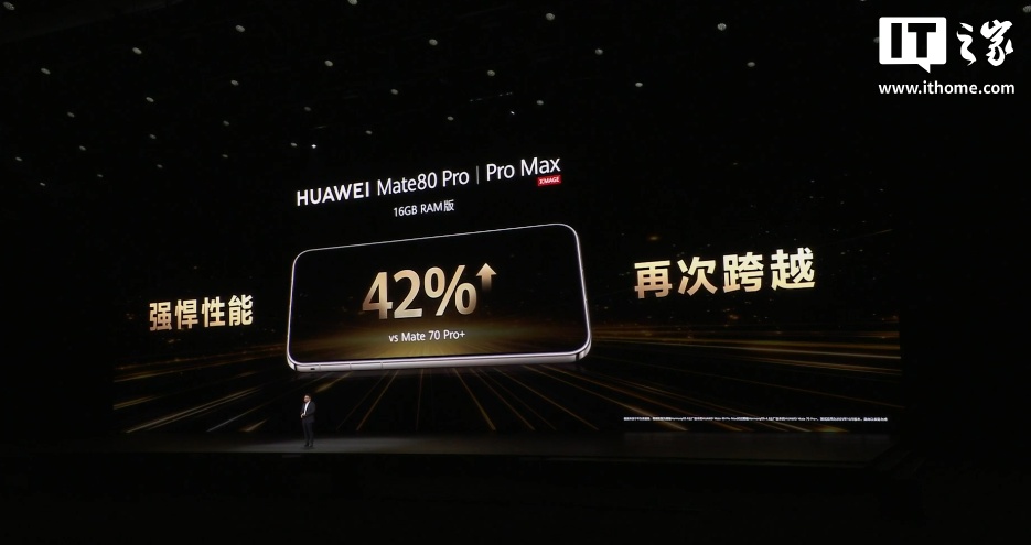此外,Mate 80 Pro(16GB 内存)和 Mate 80 Pro Max 相比上一代性能提升 42%。