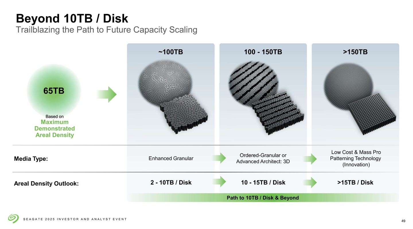 希捷代表在会议上表示,每碟 8TB 密度已通过计算机模拟。而结合希捷此前公布的 HAMR 技术路线图来看,单碟 7TB 容量的机械硬盘预计将在下一个十年初实现商业化;希捷还展望了面向单碟 15TB 乃至更高密度的路径。