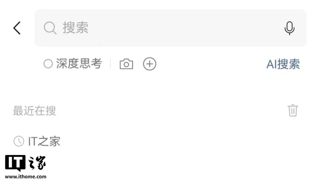 在 9 月底的安卓 8.0.64 正式版更新中,IT之家小编曾展示过一处调整,那就是搜索界面中“最近在搜”的下方新增一条下划线,与历史搜索内容划分界限。