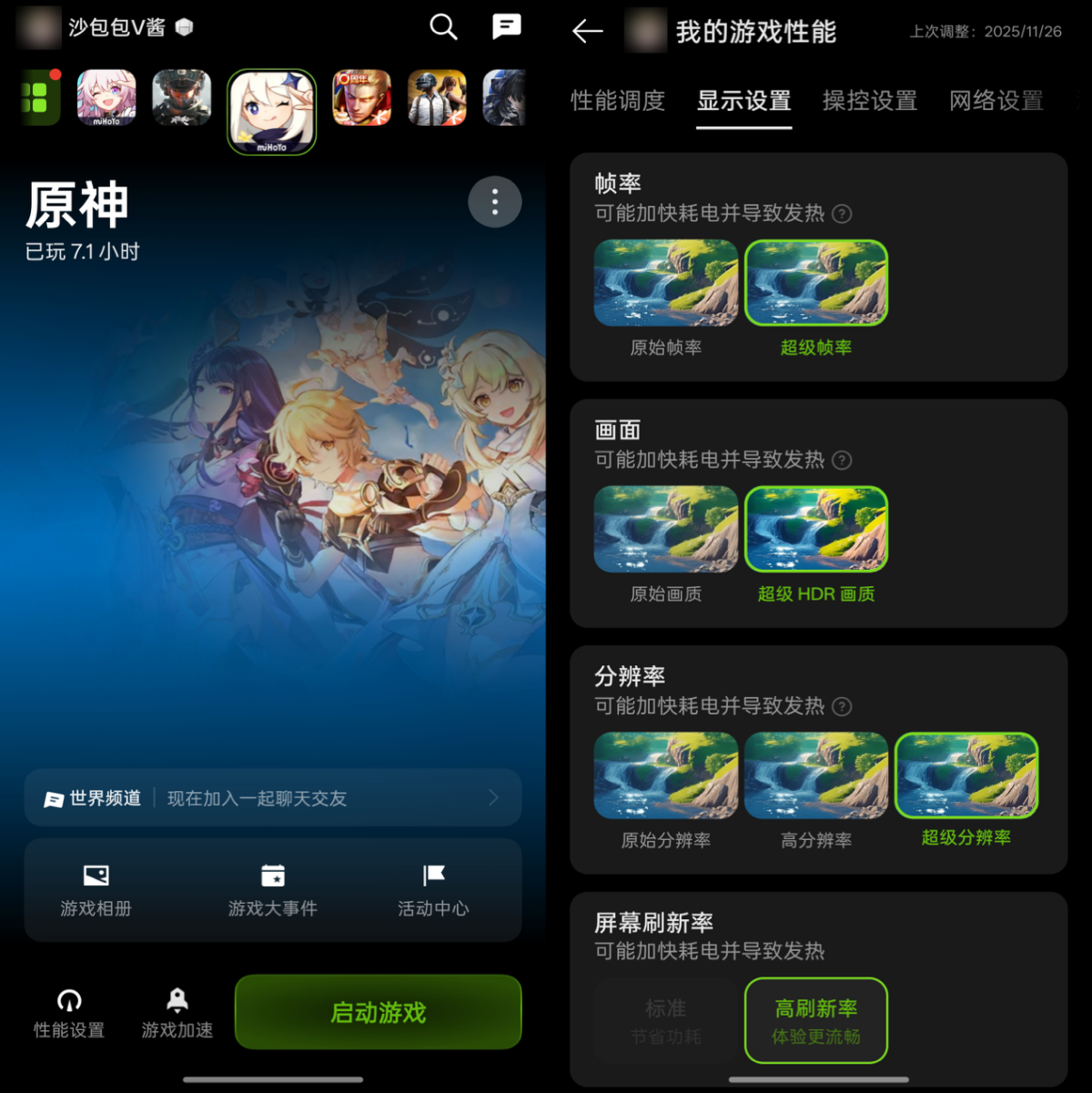 然后是重度负载的《崩坏:星穹铁道》,一加 Ace 6T 首发适配了 972P 的高分辨率,玩家朋友们可以打开游戏助手,选择《崩坏:星穹铁道》,点击左下角性能设置,找到显示设置中的分辨率选项,选择高分辨率开启。
