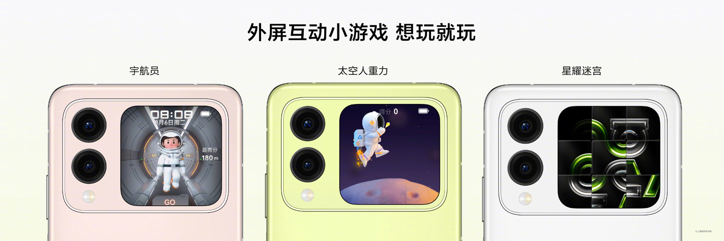此外,华为 nova Flip 小折叠手机还将上线 2 款全新萌宠主题(哈士奇皮皮、小熊猫嘟仔)和 3 款外屏游戏(宇航员、太空人重力、星耀迷宫),即将上线 3 款心动小游戏(见缝插针、新 2048、电子木鱼)。