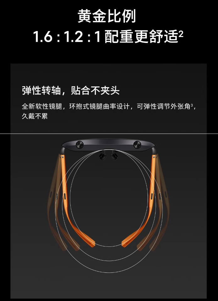 据介绍,星纪魅族 AR 智能眼镜 StarV View 提供星纪灰、曙光橙 2 种配色,此次开售的为星际灰配色。该眼镜采用 1.6:1.2:1 的比例,辅以弹性转轴 + 软性镜腿,重约 74g。