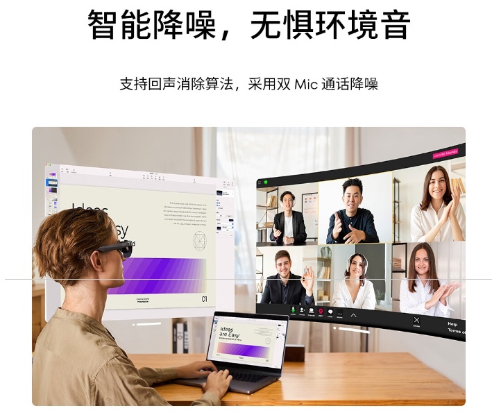 StarV View 配备定制扬声器,采用双出音孔、独立音腔设计,轻触镜腿按键可接打语音。该款眼镜还支持双 Mic 通话降噪,内置回声消除算法;采用 3DoF 空间定位,支持跟头模式、悬停模式等功能。