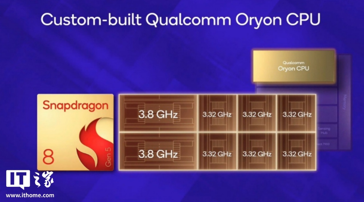 马晓民强调,第五代骁龙 8 的核心竞争力在于其采用了最新的 IP 设计和架构。这包括定制的 Qualcomm Oryon CPU、最新的切片式 GPU 架构以及升级后的 NPU。他解释道:“这是基于市场需求以及厂商对‘骁龙 8’这一名称所承载的技术领先性的期望。我们相信这些最新的配置能够呈现出骁龙 8 应有的水准。”这意味着,相比于沿用旧款顶级旗舰的架构,第五代骁龙 8 通过引入新技术特性,更能满足用户对“新一代”体验的期待。