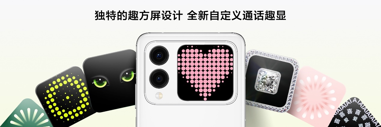 nova Flip首发通话趣显Call-emoji功能,并新增三款动效,用户自定义功能即将上线。更有外屏解压小游戏,并带来更多外屏萌宠形象,趣味十足。