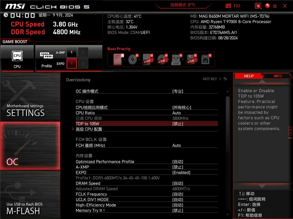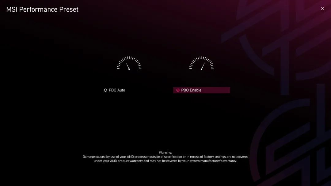 此外,借助微星主板“性能预设”(Performance Preset)功能,用户可根据自己的喜好设置功率限制,从而提升性能。另外有两个级别的设置 —— PBO 自动和 PBO 启用。