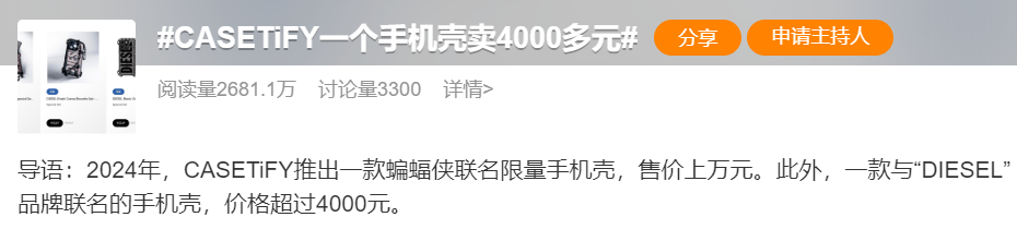 比如,它与 DIESEL 品牌联名的手机壳,价格超过 4000 元。