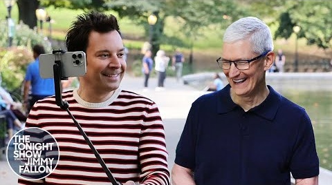 IT之家 9 月 24 日消息,苹果公司首席执行官蒂姆・库克在 iPhone 16 系列发售当天,与著名脱口秀主持人吉米・法伦一起在纽约街头漫步和交谈,拍摄深夜脱口秀节目《今夜秀》。