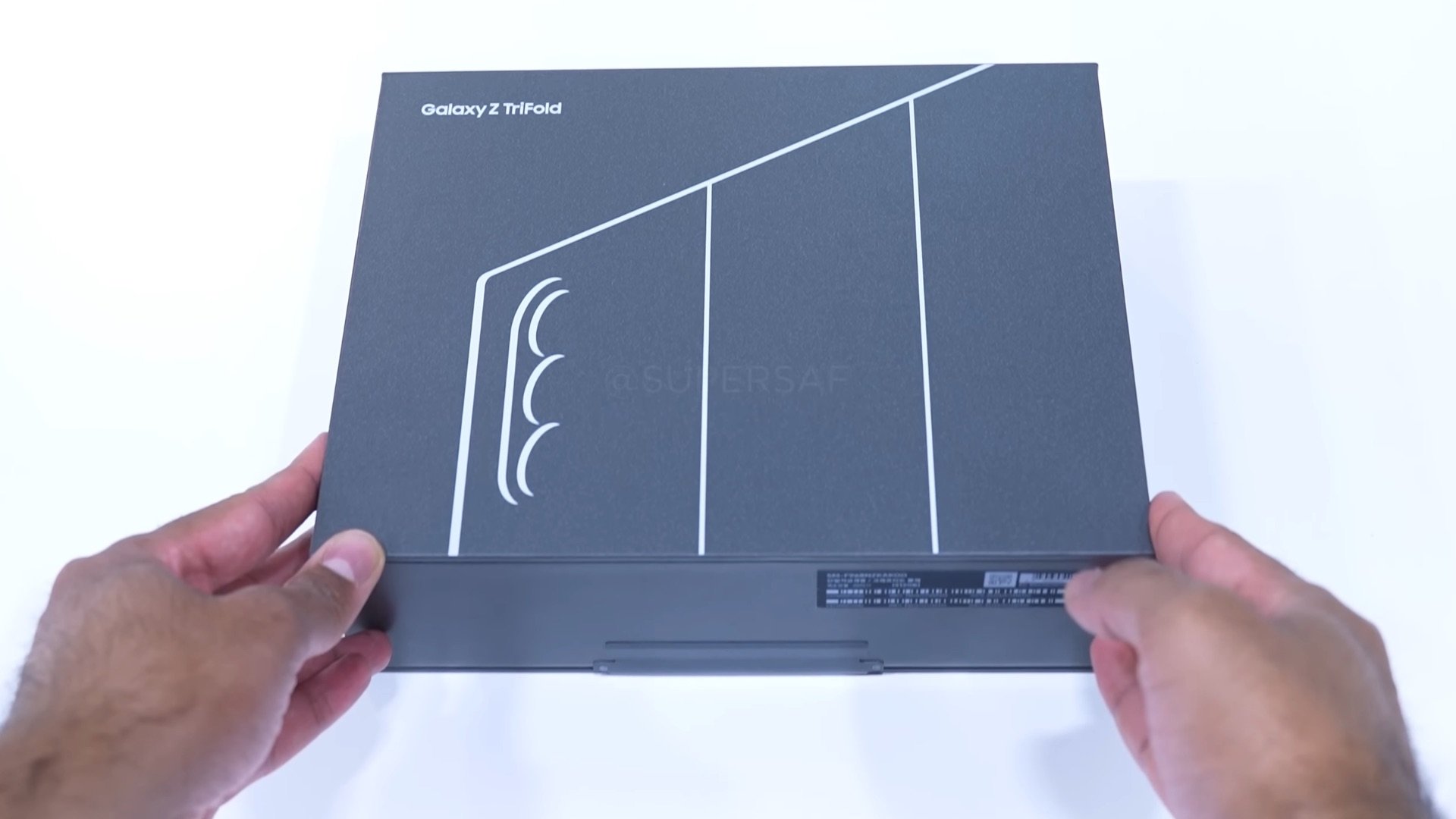 不同于以往仅保留数据线的极简包装,Galaxy Z TriFold 采用了一个体积相对较大的包装盒,开启方式如同精致的珠宝盒。