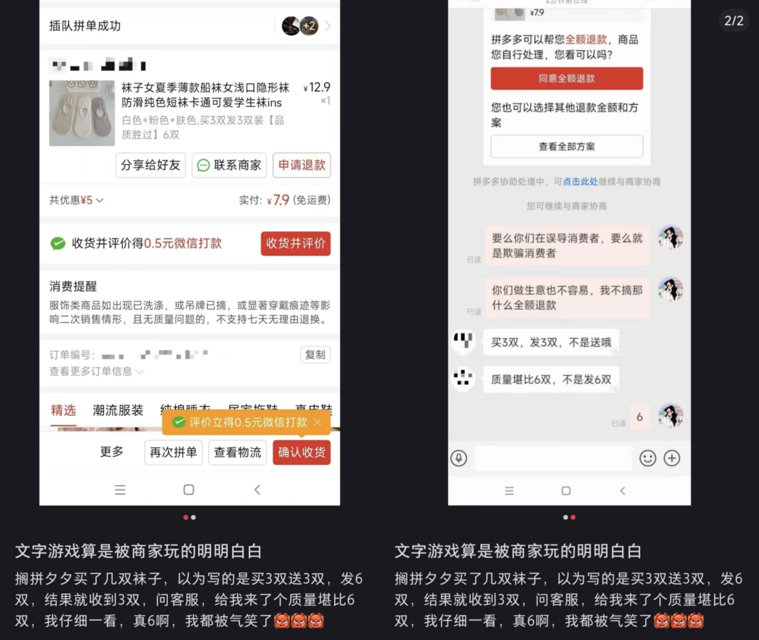 这类的情况,主要靠消费者有无「火眼金睛」了,例如经典的「买 3 双发 3 双」案例。