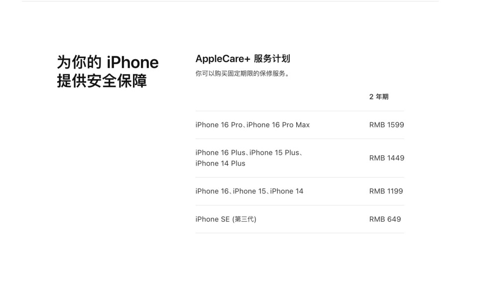 一方面,苹果希望多数用户都能主动购买AppleCare+计划。AppleCare+计划的价格大致从1199元到1599元之间,假如选择了这个计划,一年即可享受两次免费更换电池的优惠,而其他损坏的维修价格也大幅降低。