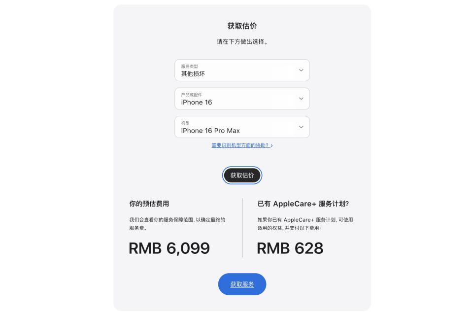 至于前面提到过的相机控制按钮损坏,目前在苹果官方的维修项目里并不支持独立维修,只能归类到「其他」项目里。假如要进行「其他」项目的维修,那么iPhone 16 Pro Max进行一次维修的价格就要6099元。作为对比,iPhone 15 Pro Max的「其他」维修为5699元。