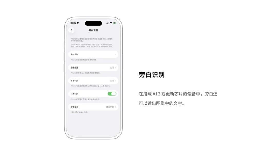 当时,辅助功能只包括五项:旁白、画面缩放、反转色、单声道音频和以语音提示文本替换。但辅助功能此后一直受到 Apple 的重视和投入,经过 12 年的持续进化,俨然已经成为了 iOS 生态独树一帜的功能集合。