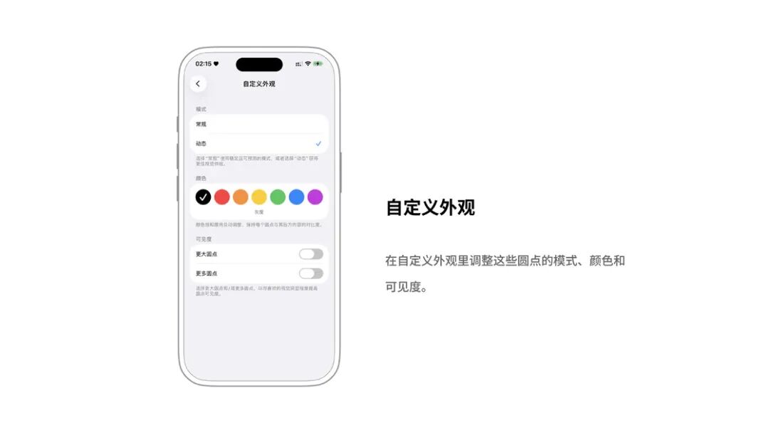 你还可以在自定义外观里调整这些圆点的模式、颜色和可见度。