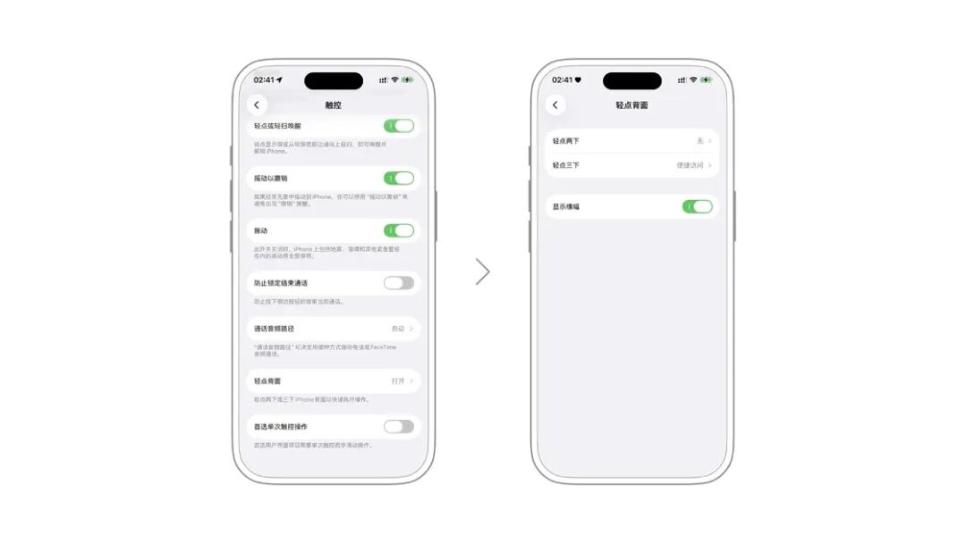 轻点背部是在 iOS 14 中新增的功能,进入设置 > 辅助功能 > 触控,拉到最底就可以找到它。