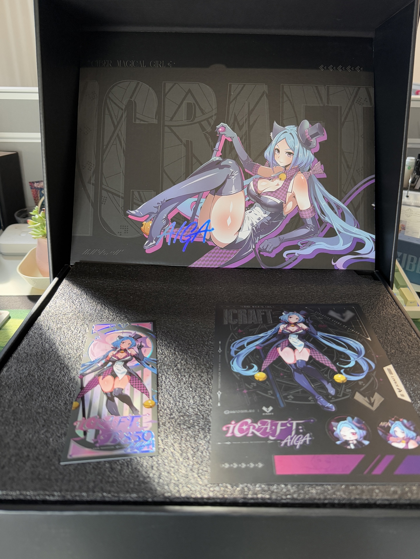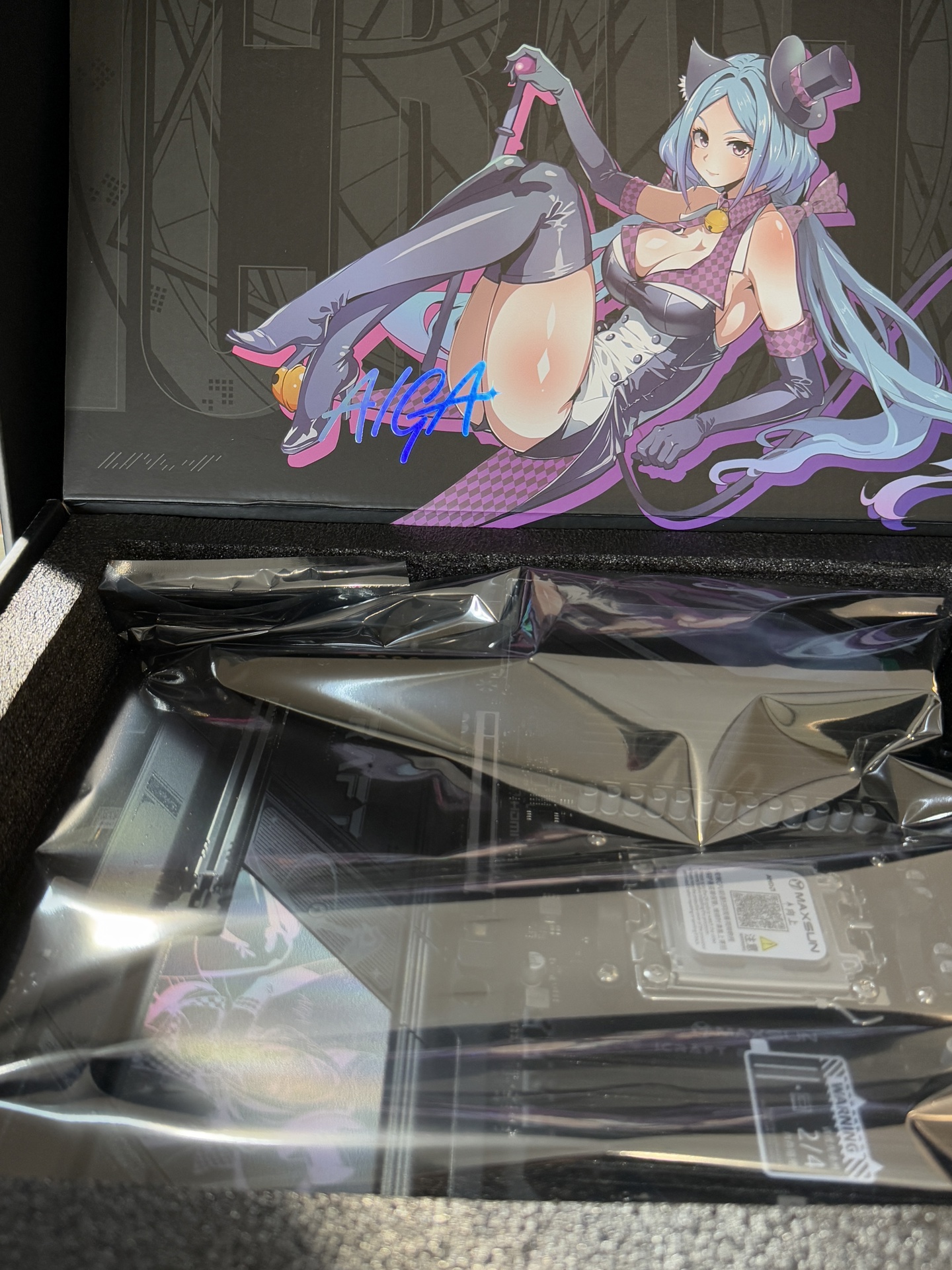 IT之家 12 月 5 日消息,铭瑄 MAXSUN 今日上午放出了 MS-iCraft B850 AIGA“瑷珈”主板的官方包装盒开箱照片。这款“二次元主板”的包装从外到内均采用了 IP 设计,随附了多款主题形象配件。