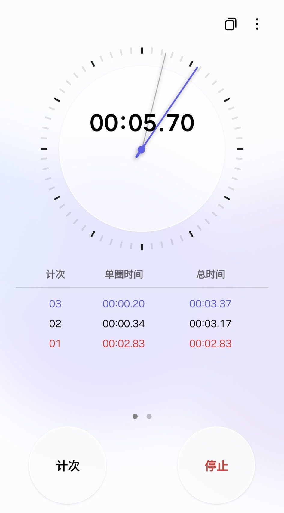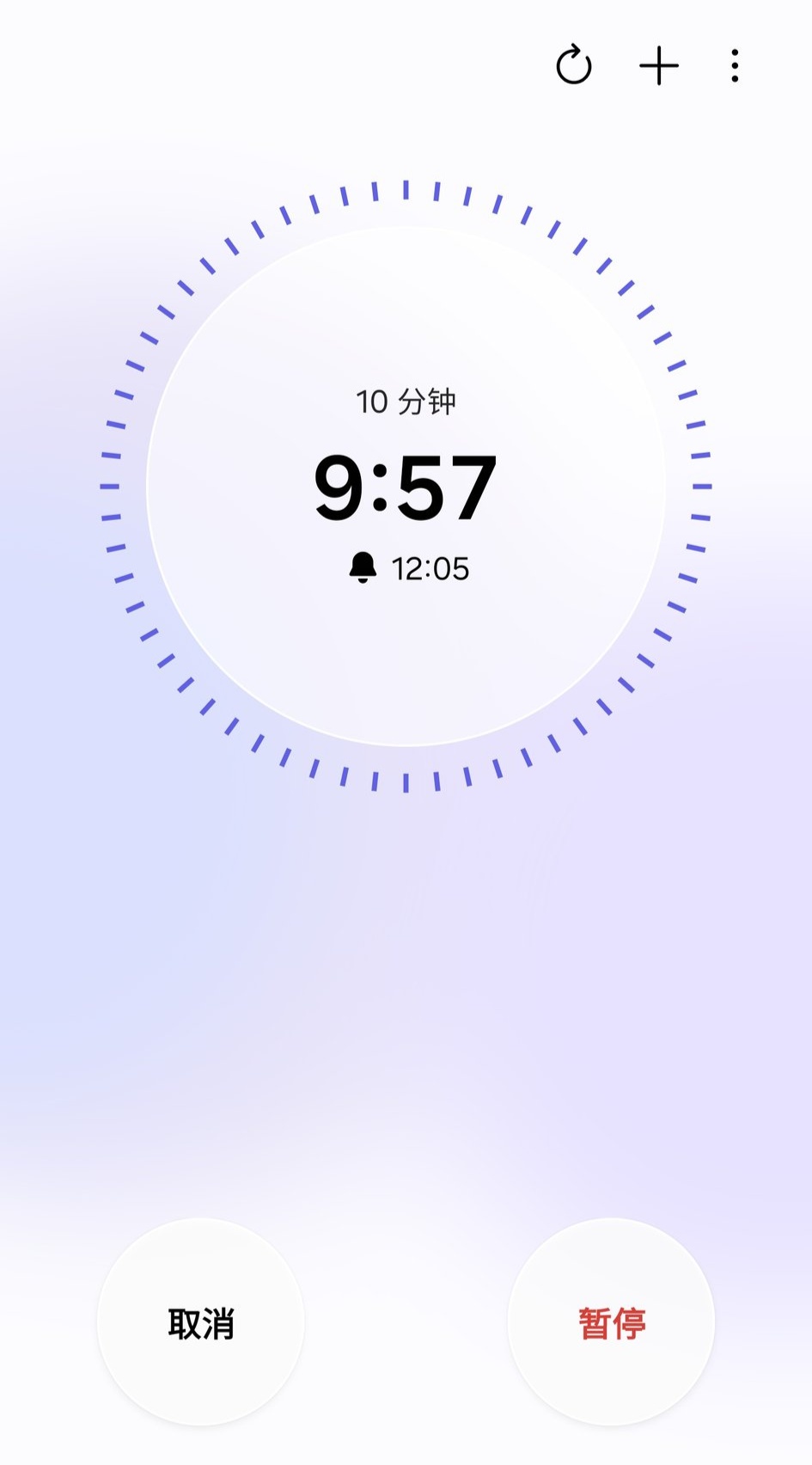 值得注意的是,三星还为 One UI 8.5 的秒表新增了一个拟物化的指针式表盘,相比以前的纯数字计时器更有立体感,计时器则是采用了渐变背景取代单色背景,暂停和取消按钮也变得更大,显得更加统一。
