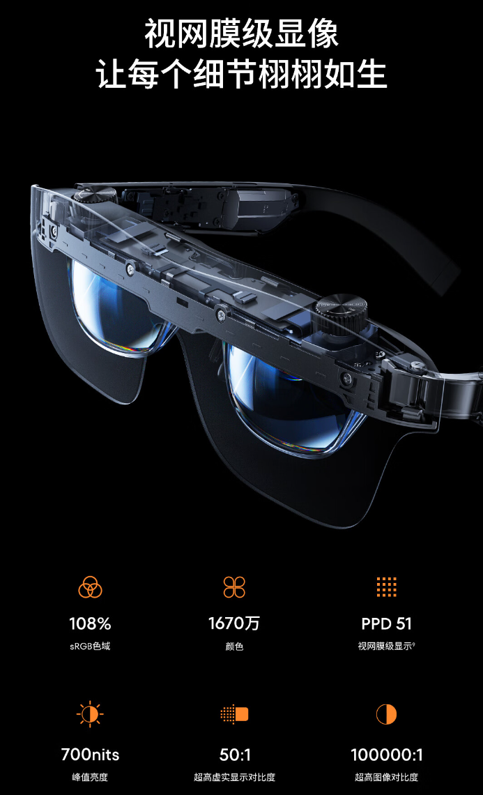 星纪魅族 AR 智能眼镜 StarV View 已于昨日正式开售,该款眼镜拥有 700nit 峰值亮度,支持 120Hz 高刷,提供星纪灰、曙光橙 2 种配色,可投 188 英寸画面。