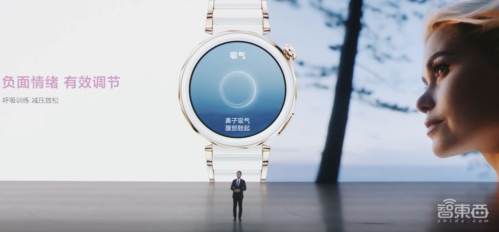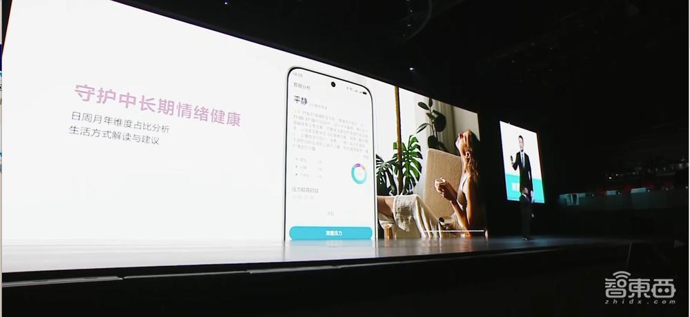 如果说专业的腕上跑姿数据分析给运动者的身体健康养护提供了参考,那么华为WATCH GT 5 Pro还能成为你心理健康的情绪健康助手。何刚将这一新功能形容为“抬腕就能看到女朋友心情,再也不用猜了”,引得现场的观众们哈哈大笑。