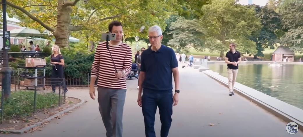 在美国知名脱口秀演员吉米·法伦(Jimmy Fallon)本周播出的节目中,播放了上周五iPhone 16系列首发日与库克一同录制的片段。两人从纽约第五大道的苹果旗舰店步行穿过中央公园,来到位于上东区的另一家苹果店。